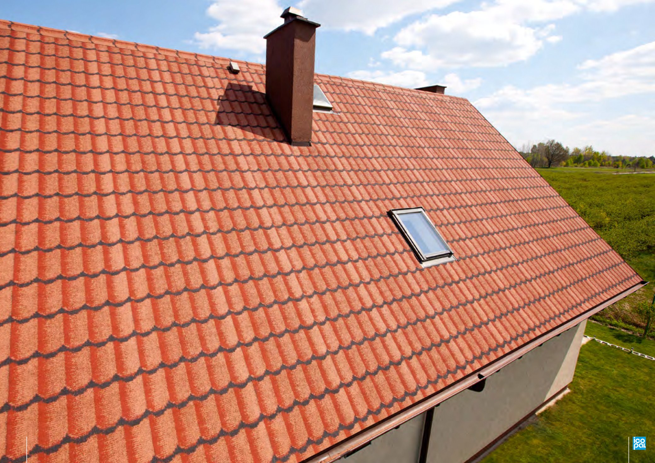 A megjelenés esztétikus, 3D cseréphatást kelt, illetve szigetelőlemez anyagában mintás felülete biztosítja az anyag színtartósságát.